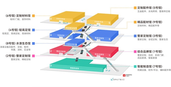 以定制家居生态为核心聚焦点,重磅打造旧改、整装、卖场 / 经销商、出海、设计师、新媒体六大垂直产业服务平台,为行业提供全链路、多维度的专业支持,致力于建成全球定制家居行业的标杆性展贸中心。
